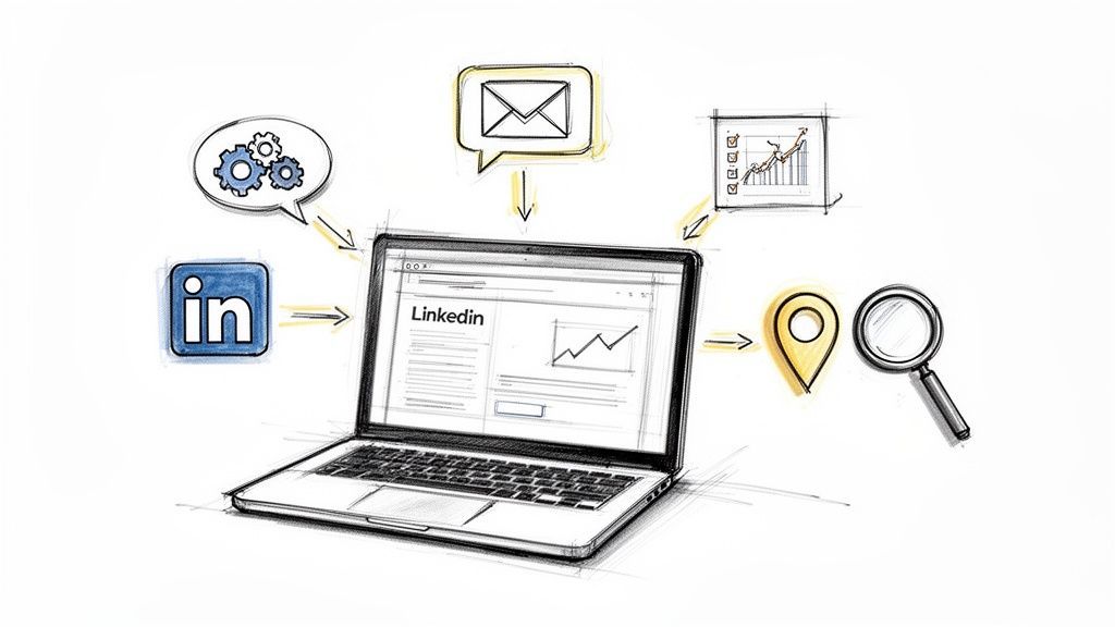 Think of LinkedIn as the world's biggest professional networking event, and you don't even have to leave your desk. It’s the perfect place to find and connect with the exact decision-makers in your target industry, from startup owners to marketing managers.