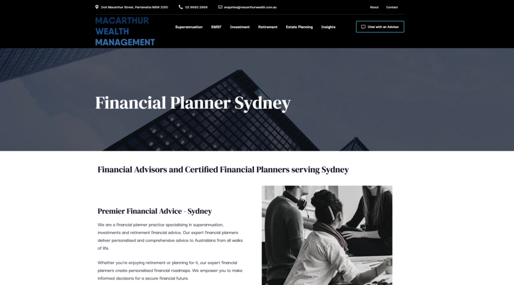 - Now ranking for “financial planner” searches across Sydney suburbs